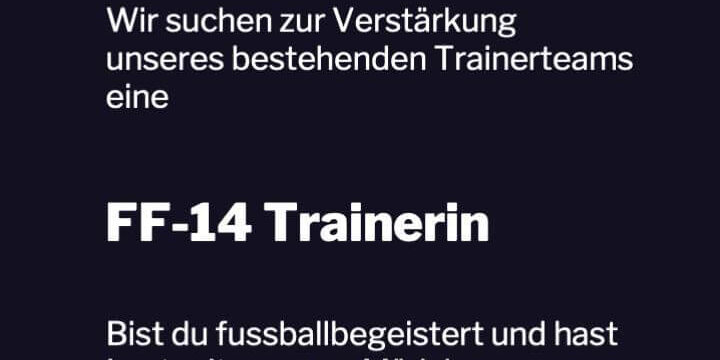 Wir suchen zur Verstärkung unseres Trainerteams eine engagierte Trainerin für unser FF-14 Team. Wenn du fussballbegeistert bist und Freude daran hast, mit motivierten Mädchen zu arbeiten, bist du bei uns genau richtig.